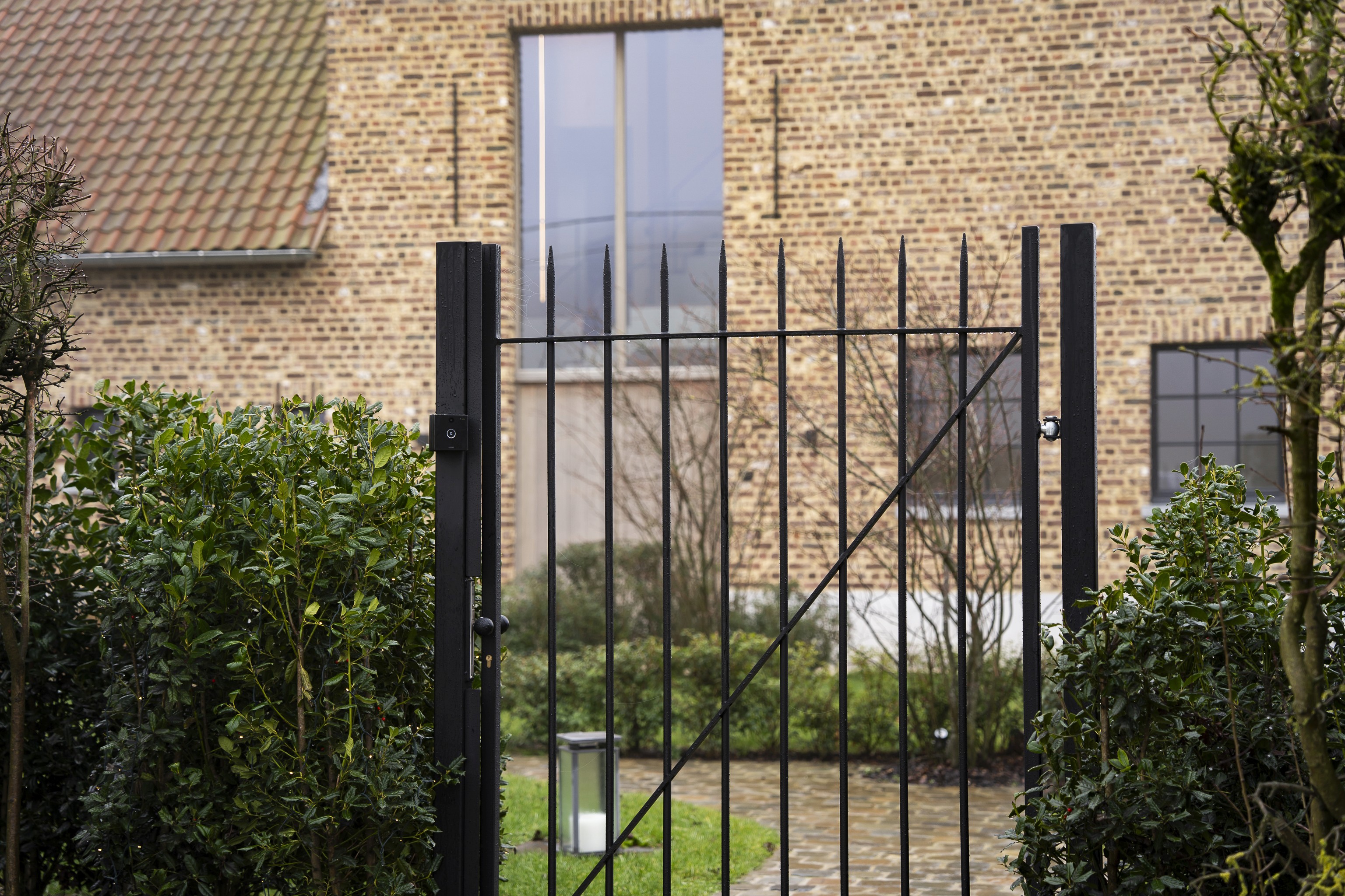 Ontwerp & visie We kozen voor een klassieke verticale belijning met een hedendaagse interpretatie. De ranke spijlen creëren transparantie en doorkijk, terwijl de diagonale verstevigingen subtiel verwijzen naar traditioneel smeedwerk. De zwarte afwerking zorgt voor contrast met de warme baksteen en het omliggende groen, zonder hard aan te voelen. Het resultaat is een poort die rust uitstraalt, maar tegelijk duidelijk afbakent.